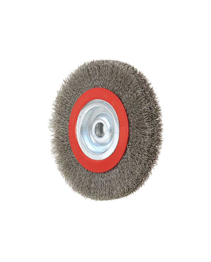 Per spazzolatura fatta con macchine stazionarie e mole da banco. Molto resistente, lunga durata, lavoro aggressivo. SPAZZOLA COMPLETA DI ADATTATORI.
